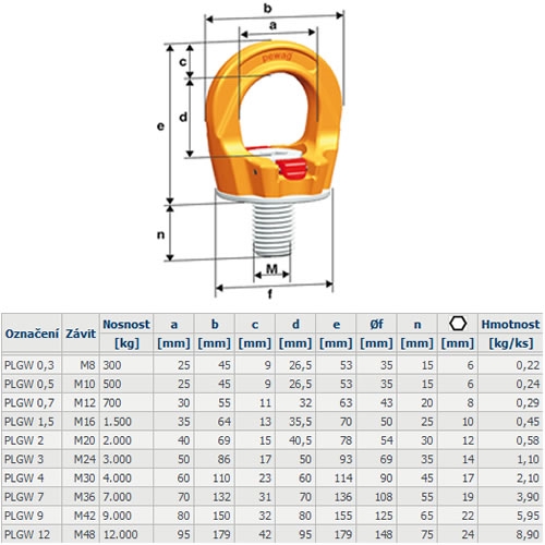 Je otočný v rozsahu 360°, obsahuje patentovaný a speciální vyměnitelný šroub z materiálu třídy 10.9, který je 100% defektoskopicky testován má dobrou chromátovou protikorozivní úpravu a vyznačenou nosnost s velikostí závitu. Každý vázací bod je opatřen seriovým číslem umožnujícím dohledatelnost. pewag profilift gamma je také dostupný v provedení s UNC-závitem.