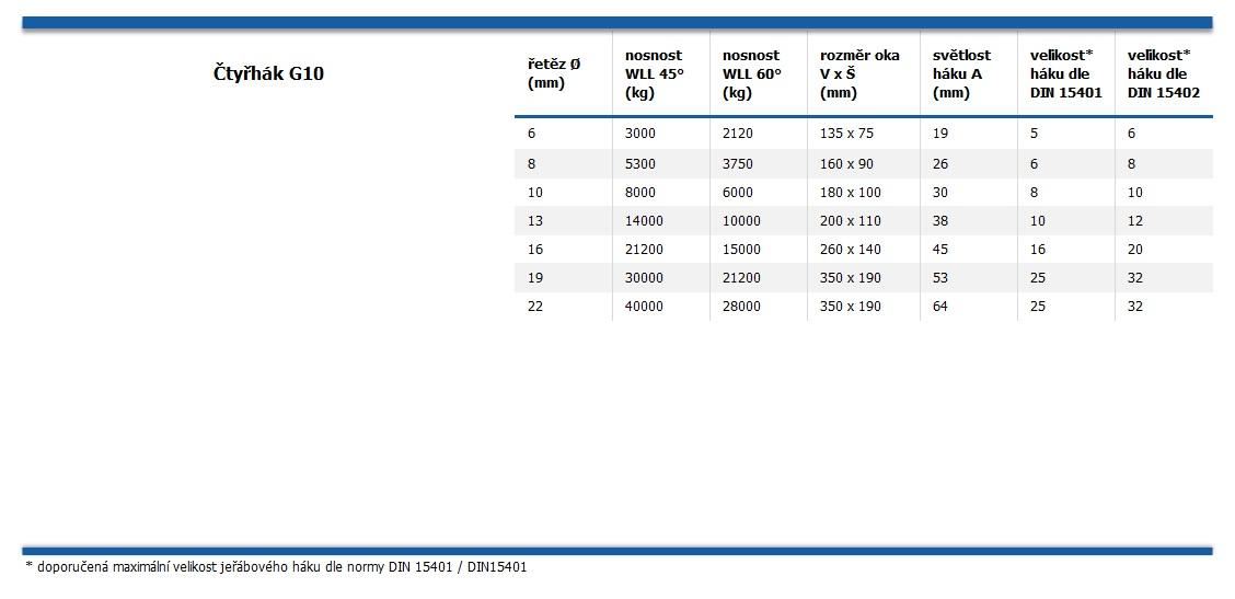 Popis Vázací řetěz čtyřhák pr.10mm L=0,5m G10