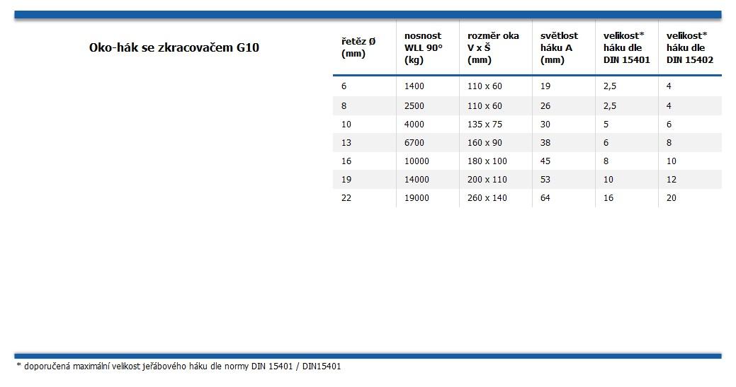 Vázací řetězy pevnostní třídy G10 se vyznačují primárně navýšením nosnosti o 25 % oproti pevnostní třídě G8 (přibližně o 30% lehčí řetěz se shodnou nosností). Díky použití vysokopevnostní oceli jsou obzvláště vhodné do těžkého průmyslu, vystavované ostrým hranám a vysokému opotřebení otěrem. Osazeno zkracovacím hákem, díky němuž lze vázat i tvarově atypická břemena a dosáhnout perfektního vystředění těžiště.