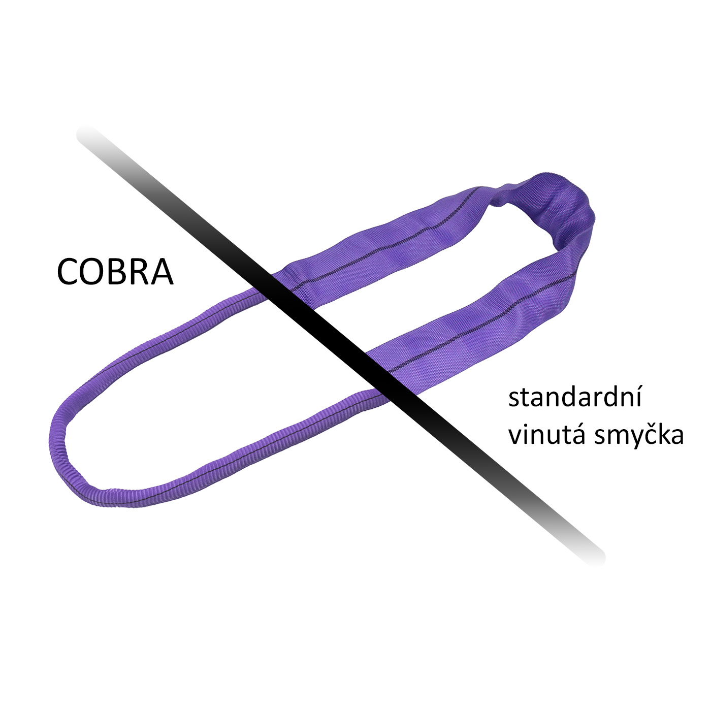 Nekonečná vinutá smyčka COBRA. Kompaktní provedení s téměř kruhovým průřezem oproti standardní vinuté smyčce vhodné pro profesionální zvedání a zavěšování. Ideální provedení do stísněných prostorů apod.