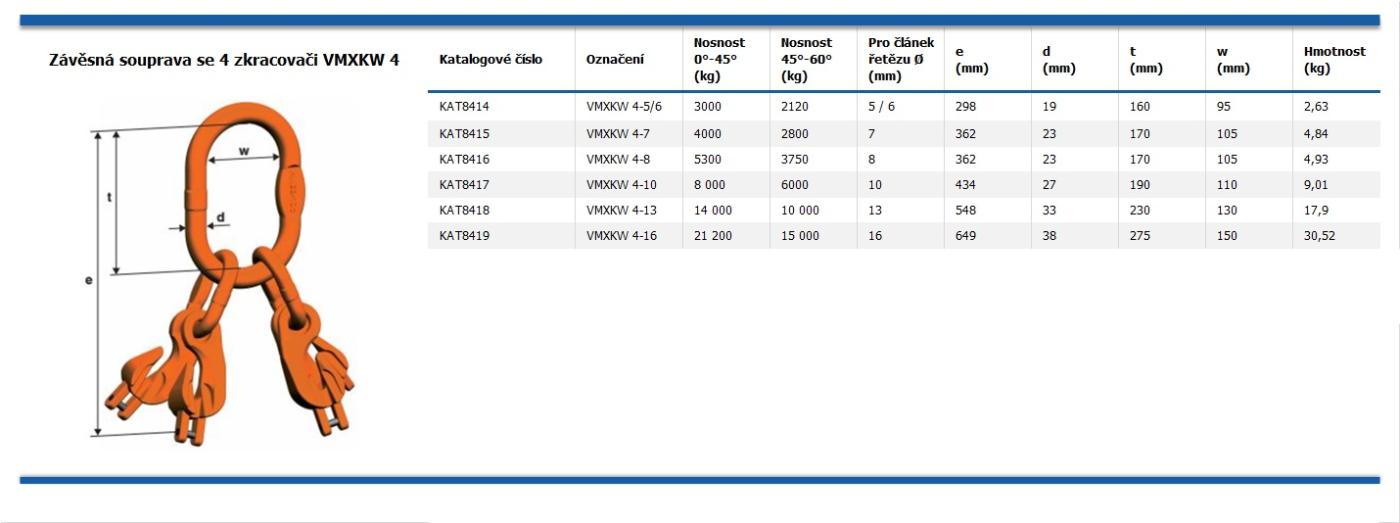 Tato závěsná souprava renomovaného výrobce PEWAG byla navržena pro snadnou montáž tří až čtyřpramenných úvazků v montovaném systému. Zvětšené oko MW navíc z této soupravy dělá ideálního partnera pro větší jeřábové háky. Vše završují kompaktní zkracovací segmenty XKW s integrovanou vidlicí pro připojení řetězu.